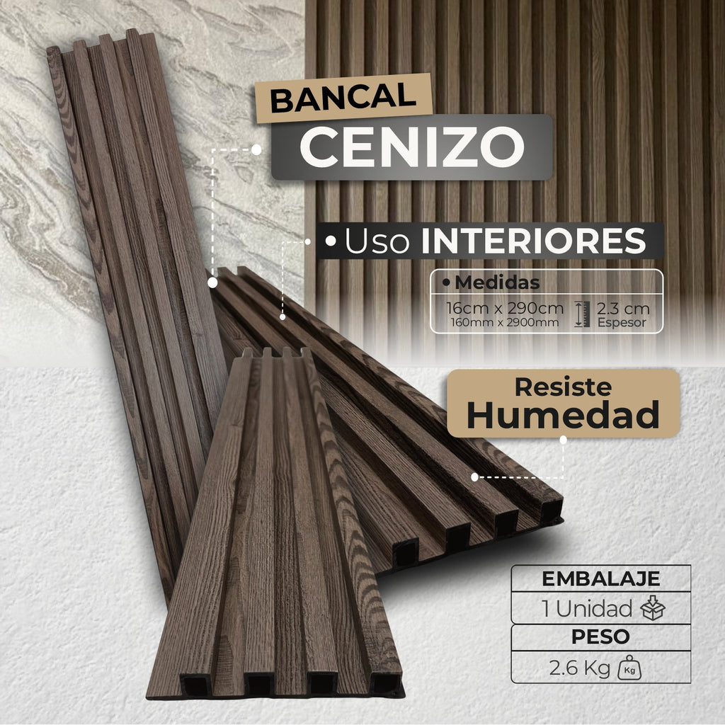 El panel WPC Bancal es un revestimiento decorativo para interiores que aporta calidez, carácter y un diseño natural a cualquier espacio. Su estética tipo listón genera profundidad y ritmo visual, convirtiéndose en una opción ideal para proyectos que buscan destacar muros con personalidad y sofisticación.